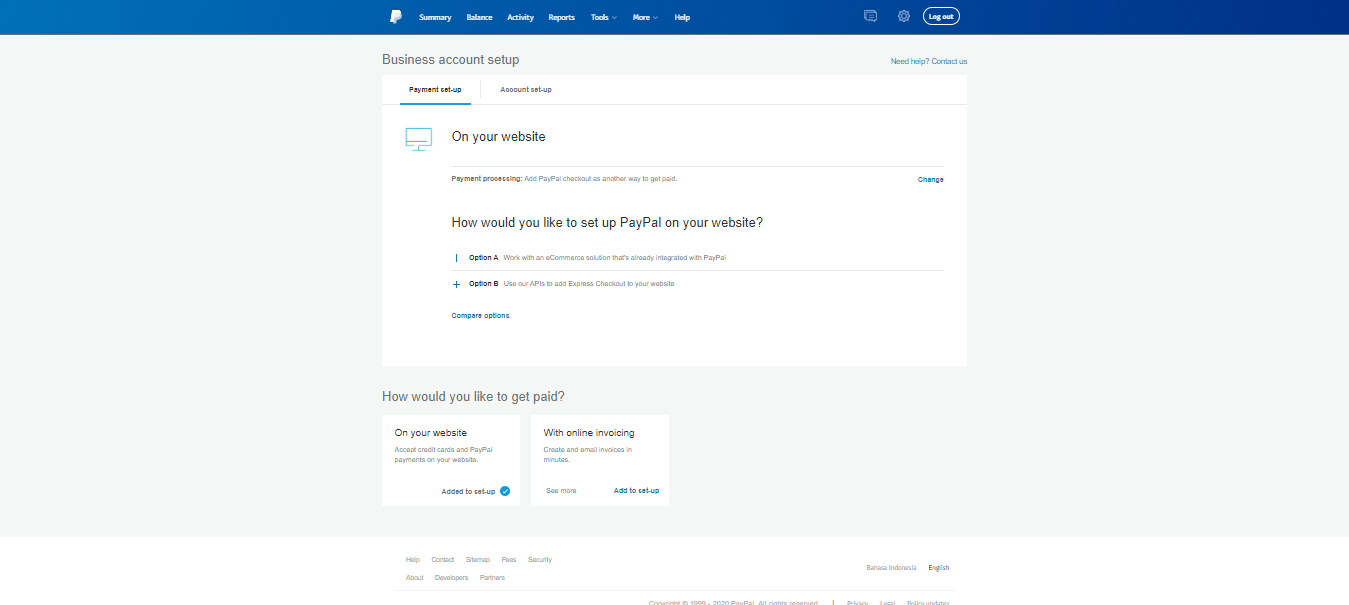 Then it will take you here : Paypal Business Account Setup. Moreover, you could choose whether to receive payment through your website or with online invoicing. I choose on my website.
